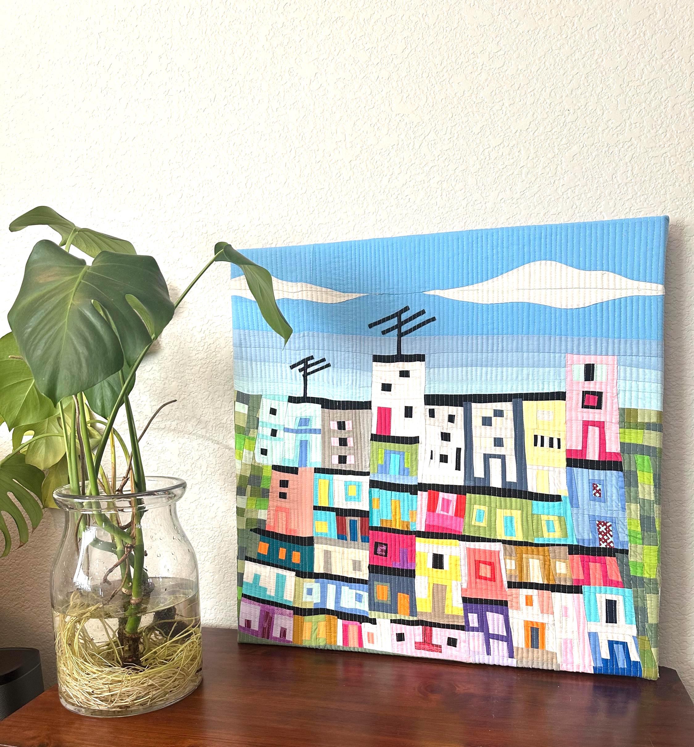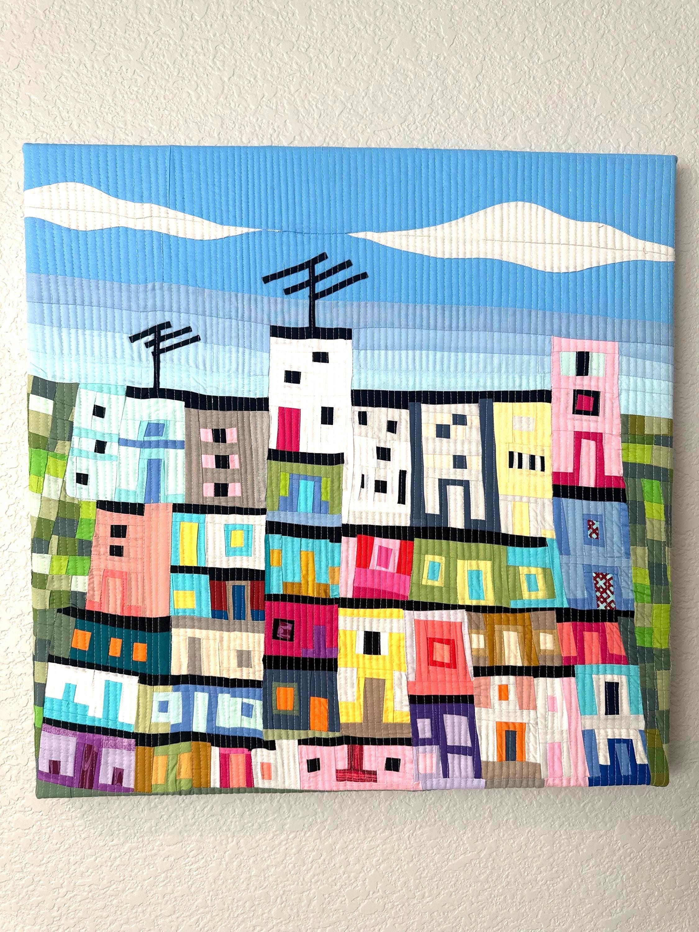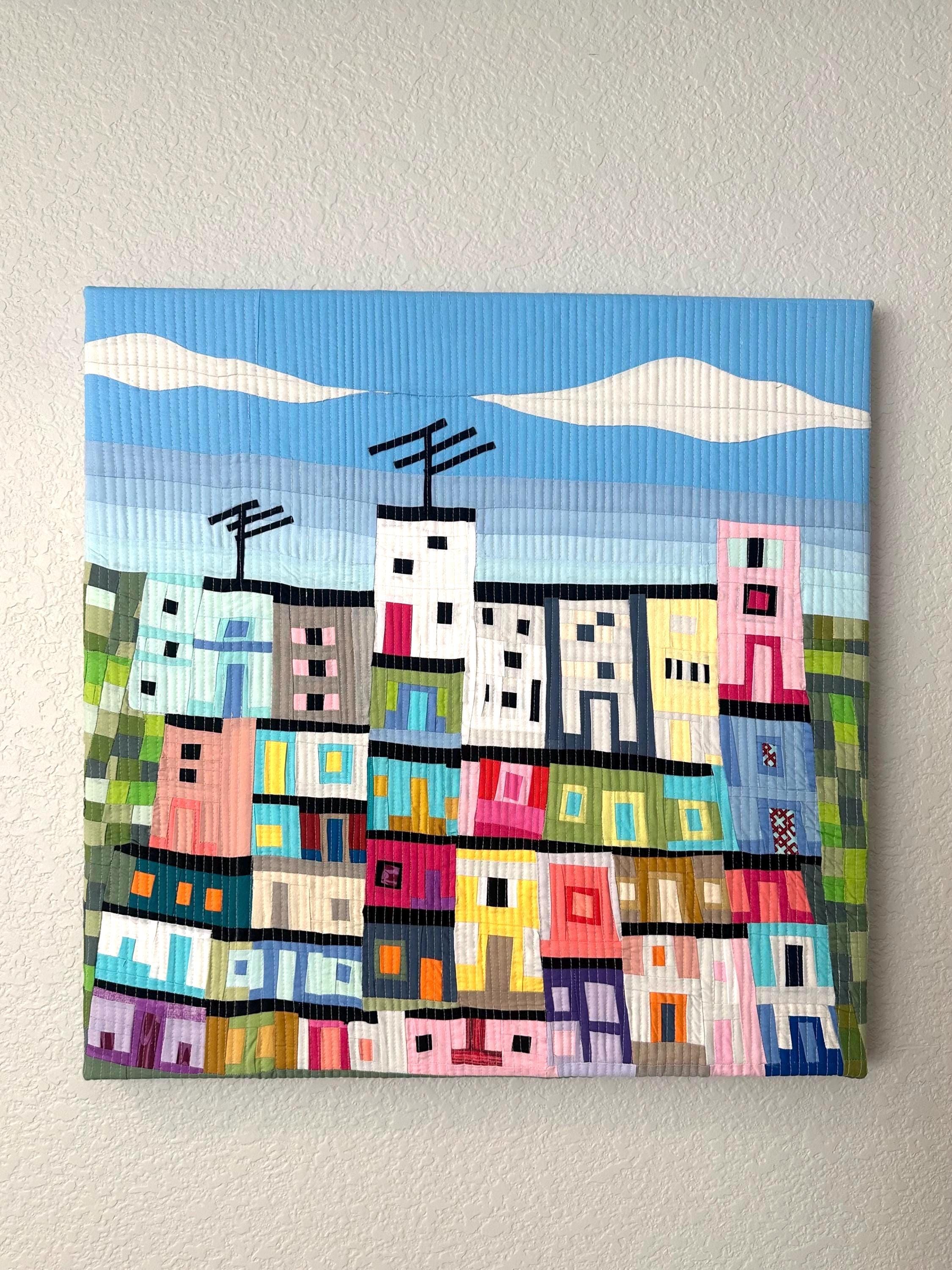 I started with 2 little houses and then added floors, a little bit of green and blue for the sky. The only detail I always had in mind was to include a house with an antenna.