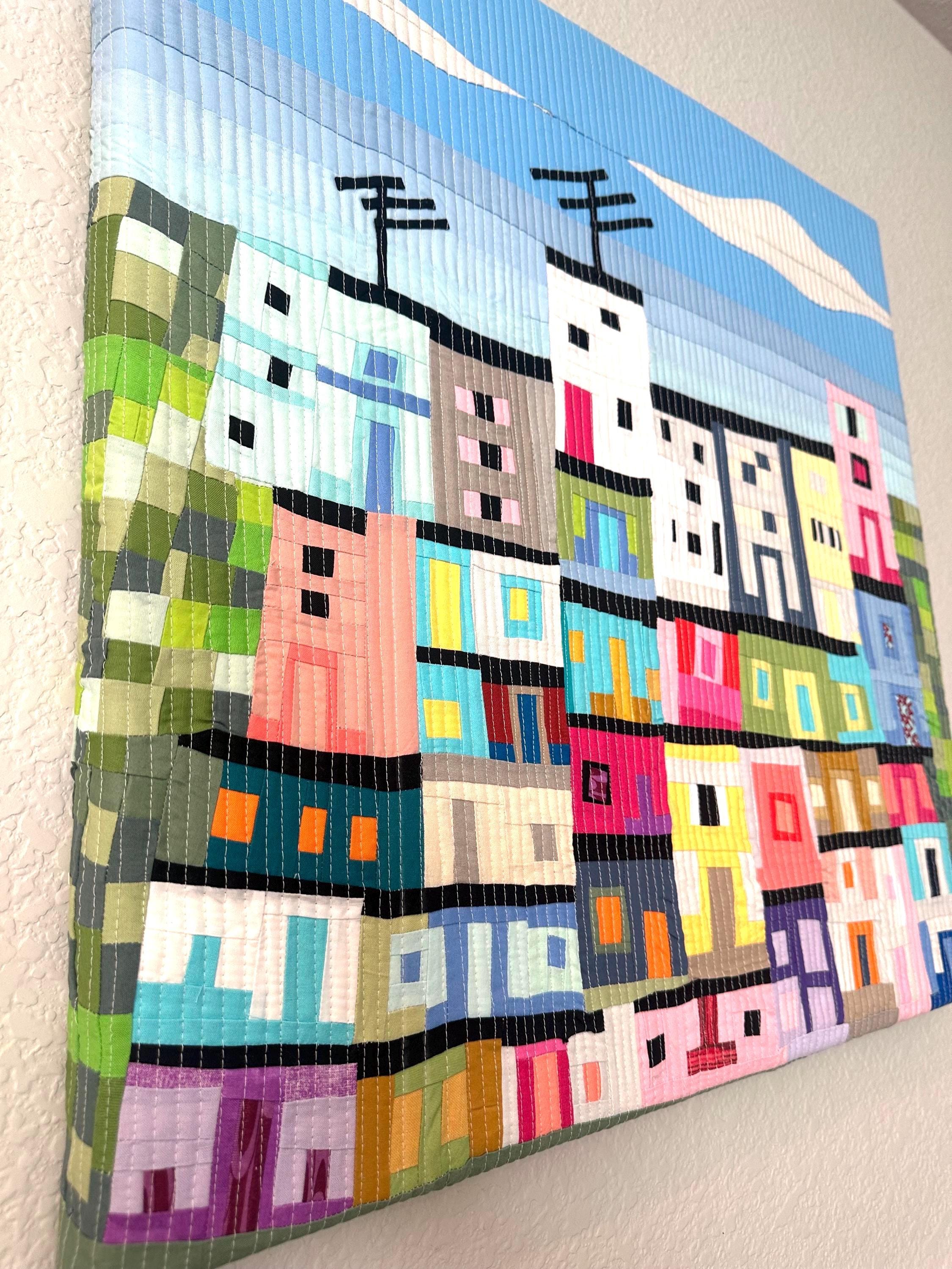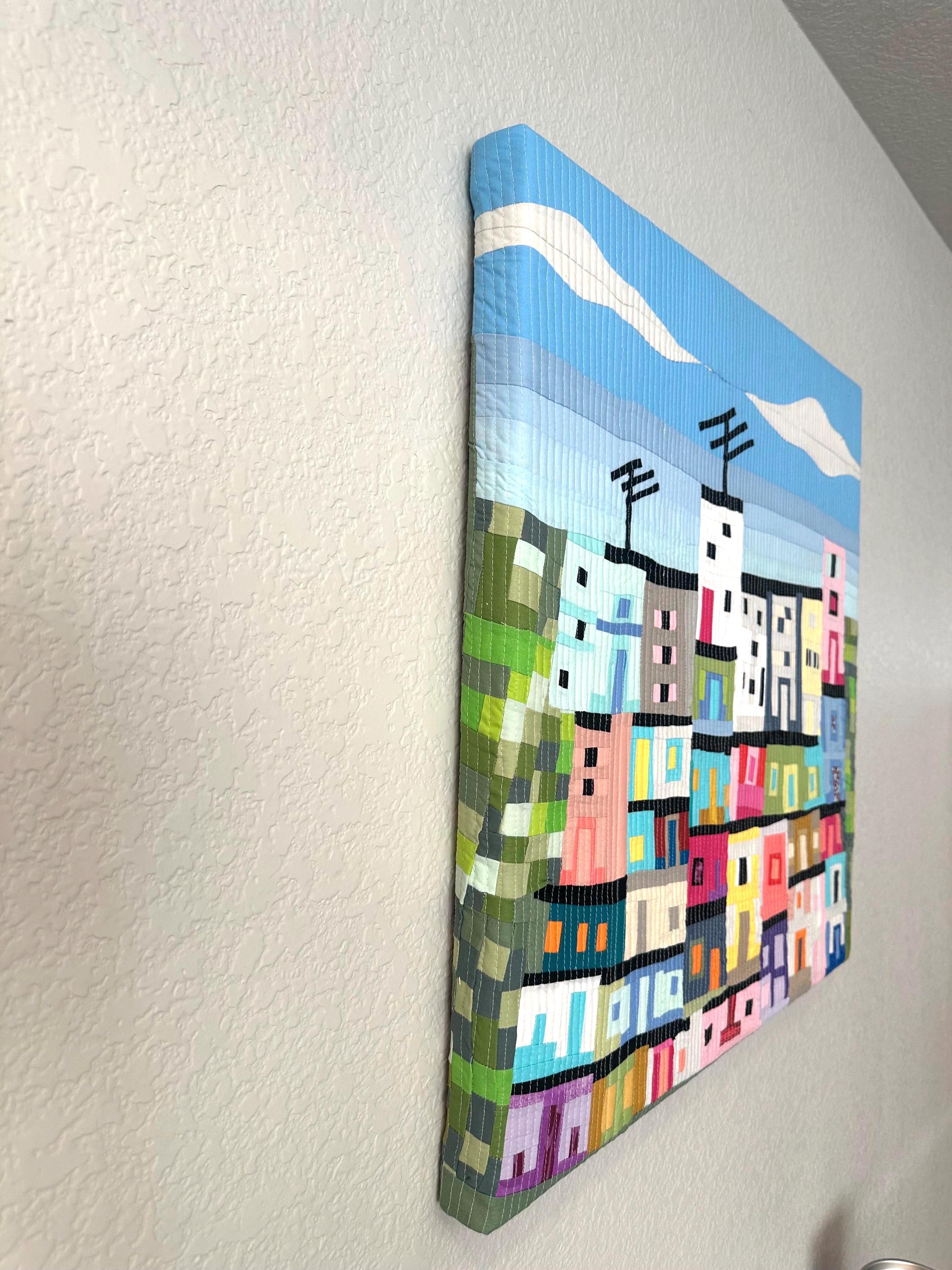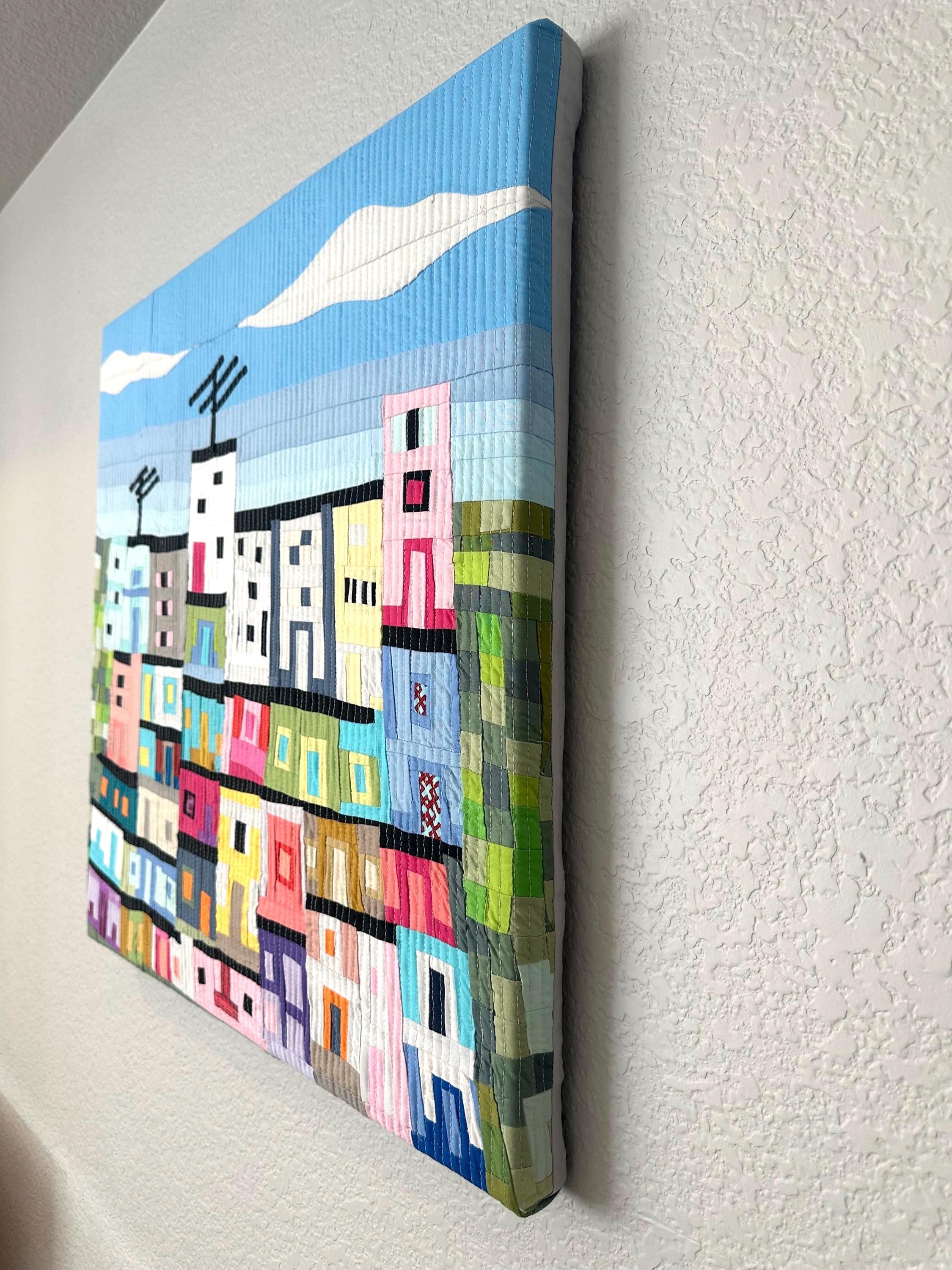 I started with 2 little houses and then added floors, a little bit of green and blue for the sky. The only detail I always had in mind was to include a house with an antenna.